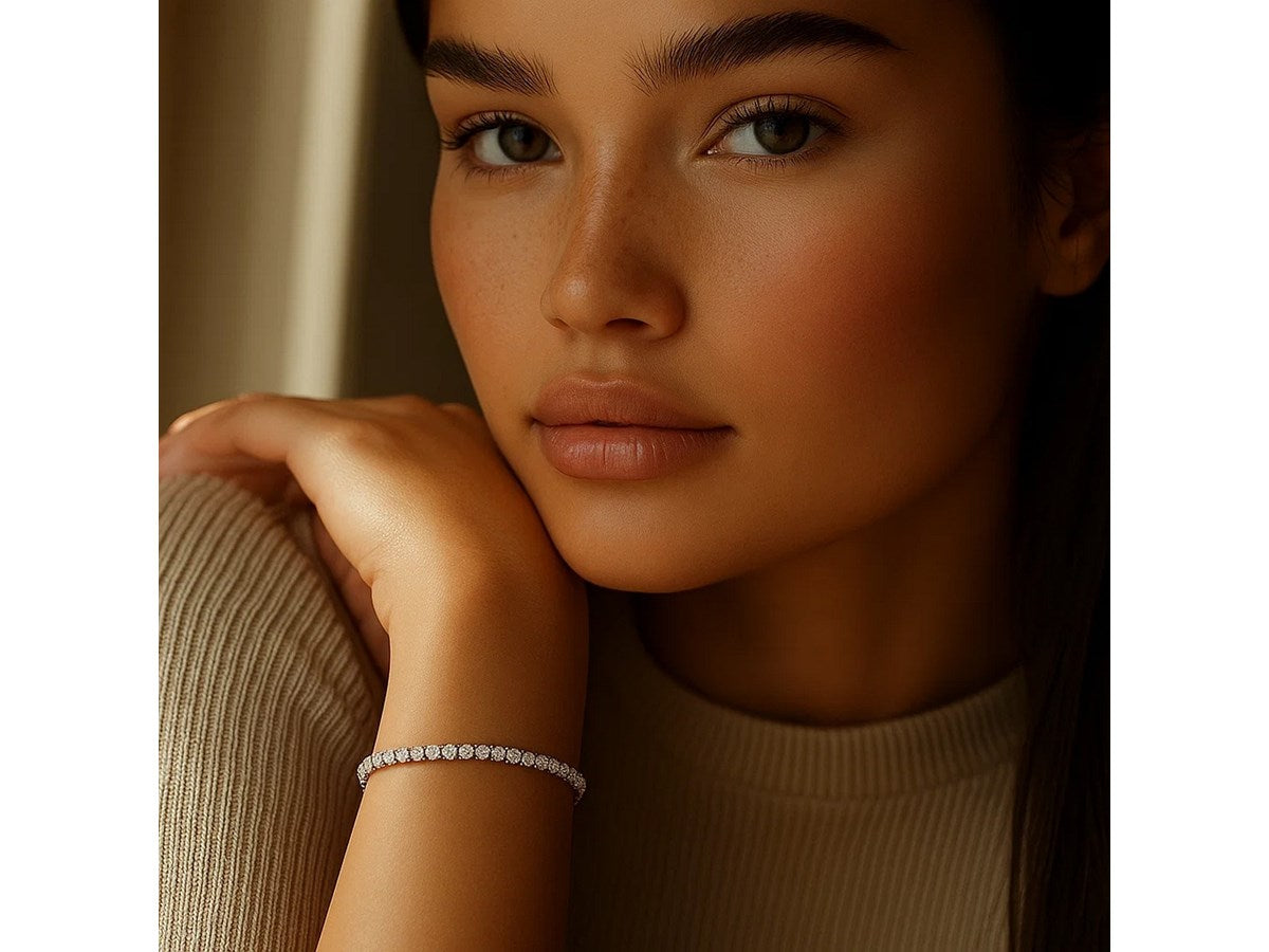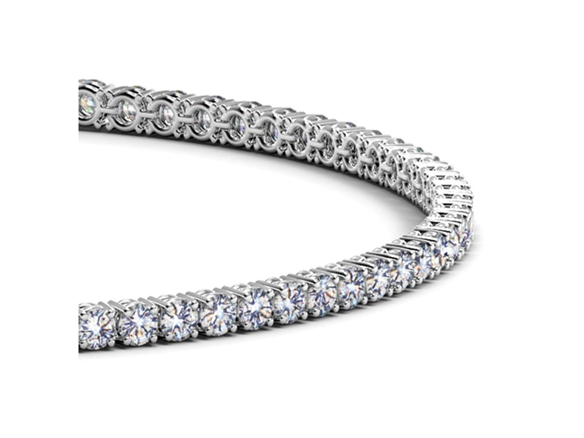 Classic four prong 2 carat total weight diamond tennis bracelet showcasing perfectly matched brilliant round cut lab grown diamonds set in 14k white gold.