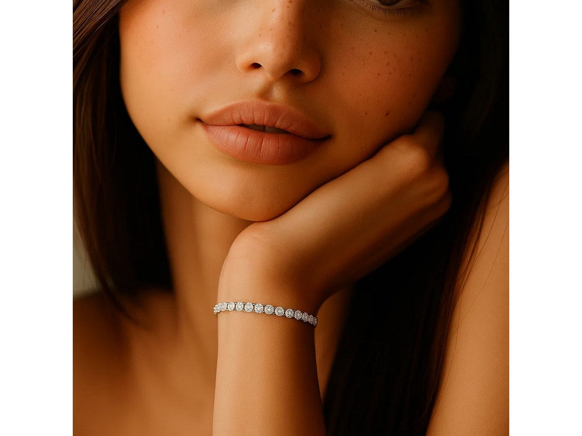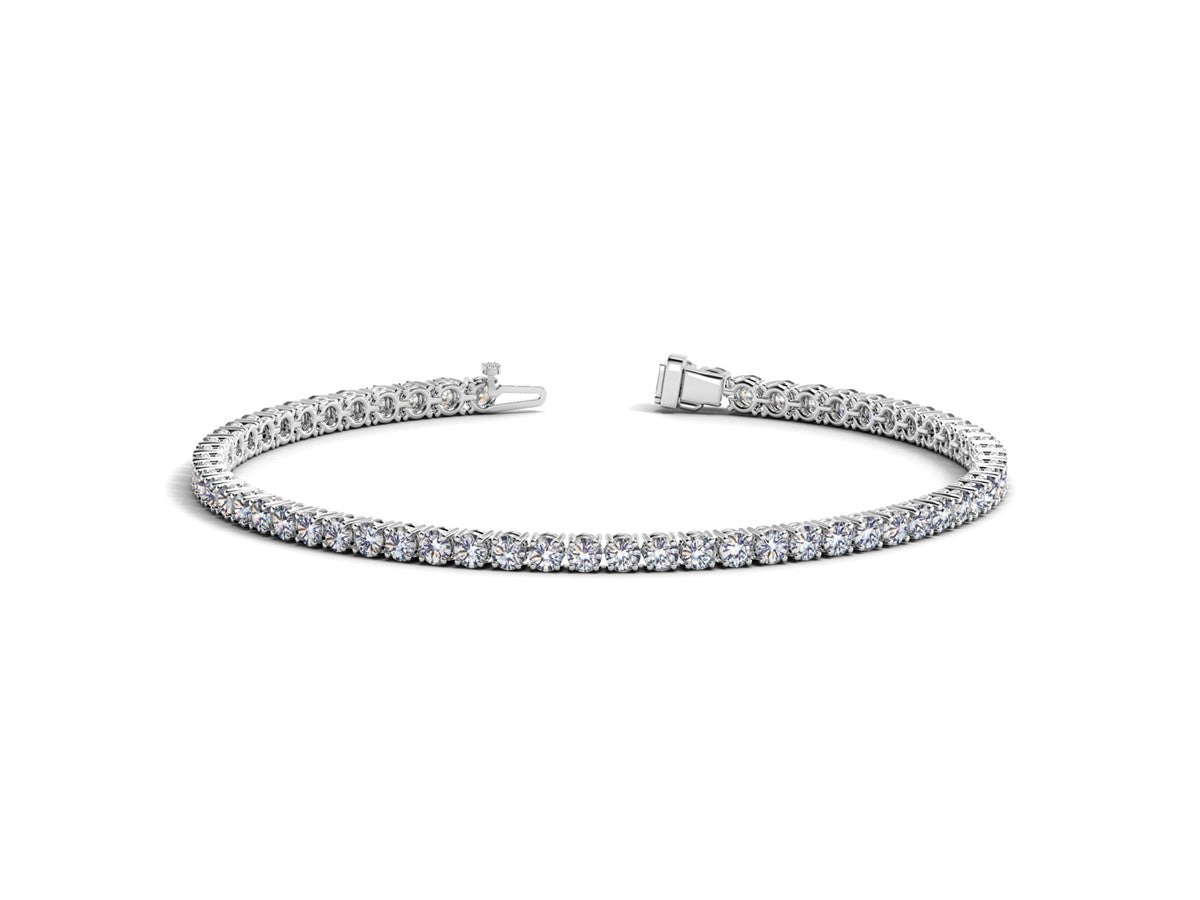 Classic four prong 4 carat total weight diamond tennis bracelet showcasing perfectly matched brilliant round cut lab grown diamonds set in 14k white gold.