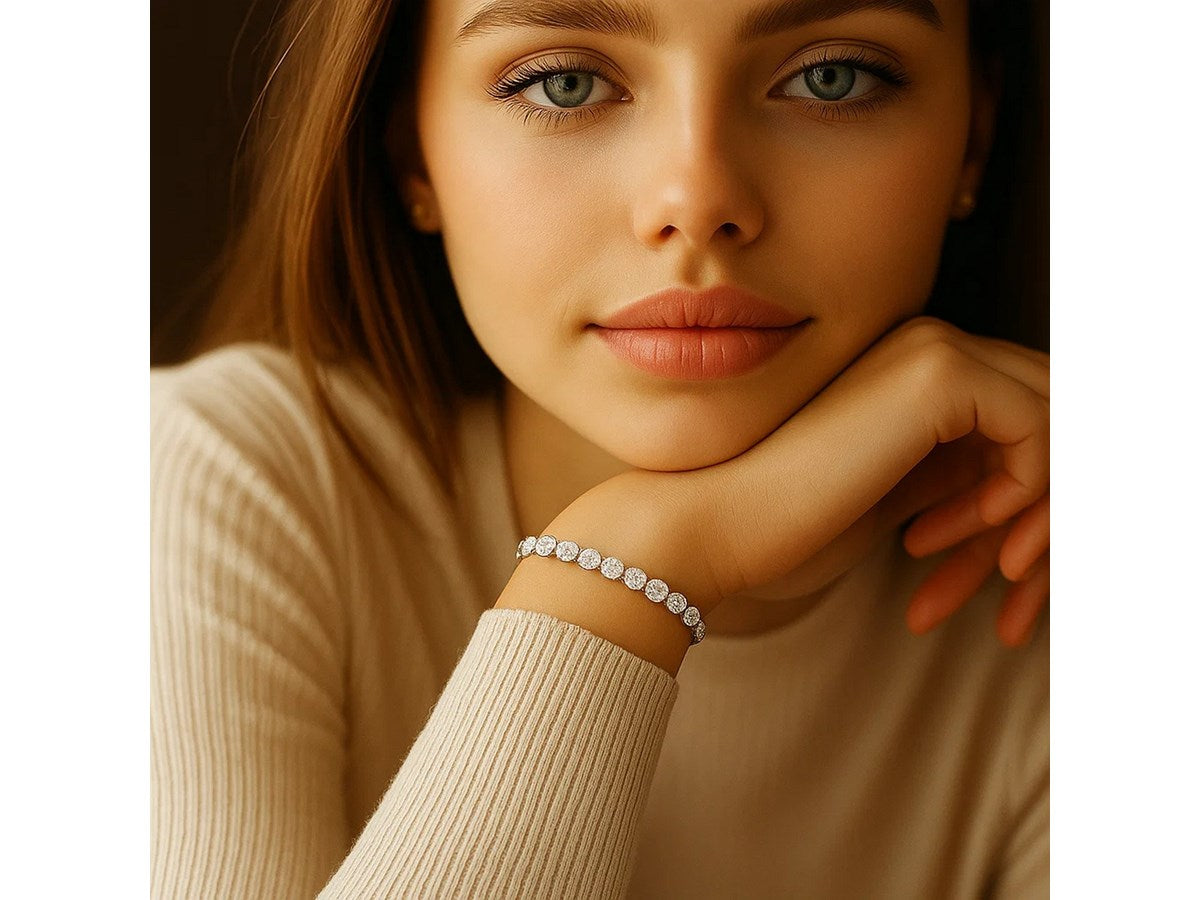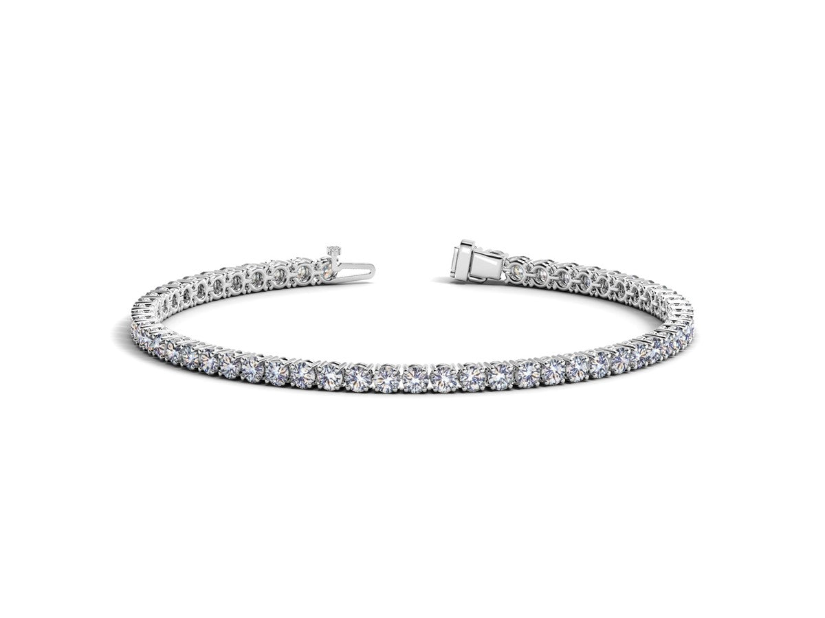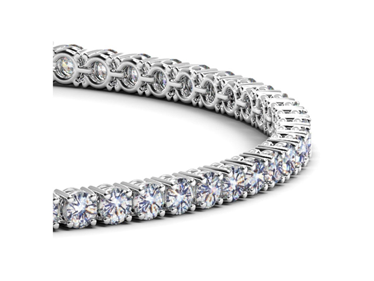 Classic four prong 5 carat total weight diamond tennis bracelet showcasing perfectly matched brilliant round cut lab grown diamonds set in 14k white gold.
