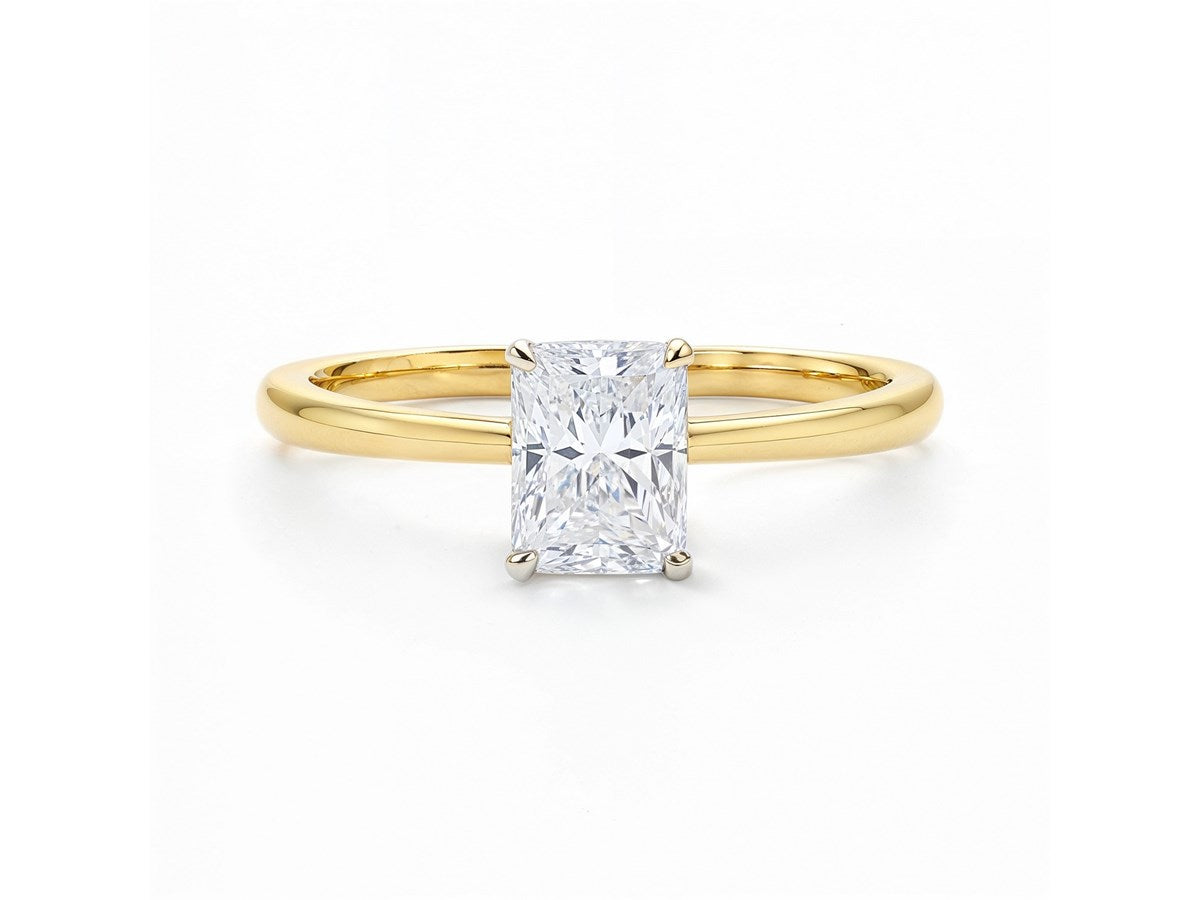 Celebrate life’s special moments with this stunning 1 carat radiant-cut lab-grown diamond solitaire ring, where timeless beauty meets modern design. IGI certified and graded G color with VS1 clarity, the diamond offers exceptional sparkle and reliable quality you can trust. Set in a secure four-prong 14K white gold head and paired with a polished 14K yellow gold band, the elegant two-tone setting creates a striking contrast that complements any style. Whether for an engagement, anniversary, or meaningful milestone, this ring is more than just a beautiful accessory it’s a lasting symbol of love and commitment.