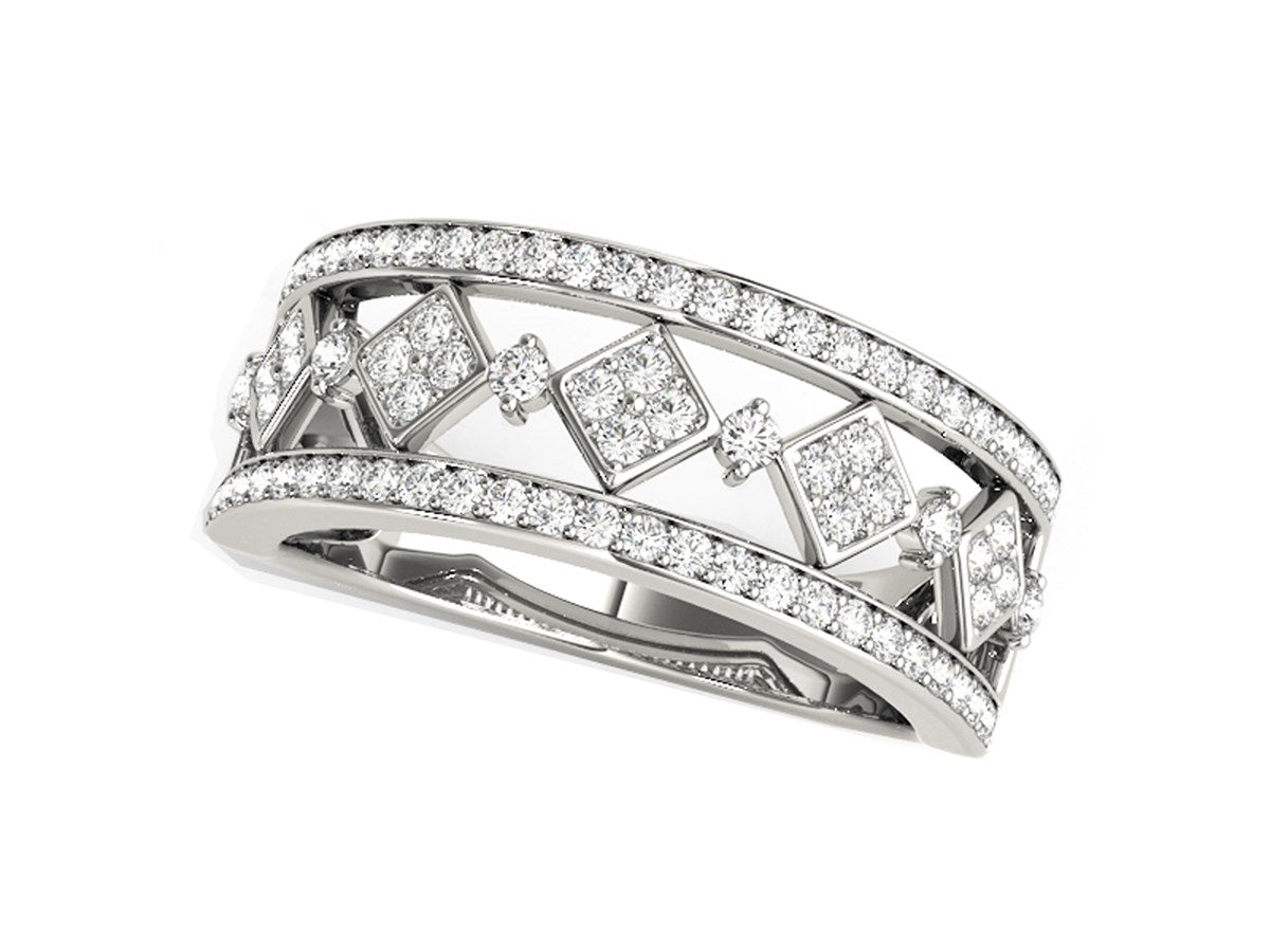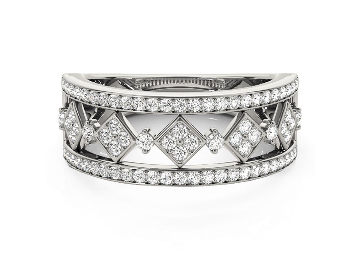 An elegant array of diamonds set in a harlequin-like square pattern adds geometric elegance to this 14k white gold ring.